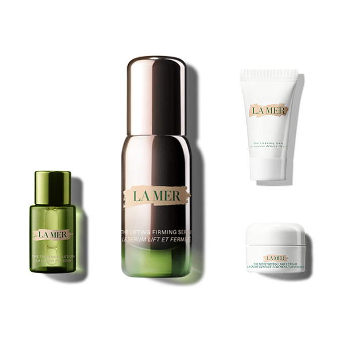 For the purchase of The New Lifting Firming Serum 15ml, receive complimentary minis of The Cleansing Foam 5ml, The Treatment Lotion 5ml and The Moisturizing Soft Cream 3.5ml for a limited time only.A Luxurious and weightless routine with The New Lifting Firming Serum that visibly lifts, firms, tightens, and redefines the contours of the face. The collection includes the perfect steps to complement your routine The Cleansing Foam, The Treatment Lotion and the Moisturizing Soft Cream.